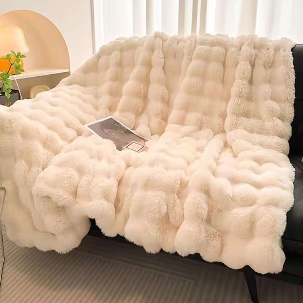 Crafted from high-quality faux rabbit fur, this blanket offers the luxurious feel of real fur without any compromise. The silky-smooth surface provides a gentle touch against your skin, making it ideal for lounging, napping, or using as an extra layer on your bed during colder months. Its versatile design allows it to function both as a decorative throw and a functional blanket. Drape it over your sofa, armchair, or bed to instantly elevate the visual appeal of your space, or wrap yourself in its softness for cozy warmth during evenings spent reading, watching TV, or spending time with family.